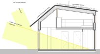 Nous lui avons proposé une maison respectant des principes simples de l’architecture bioclimatique. Une forme compacte afin d'éviter les déperditions thermiques, qui profitera des apports solaires l’hiver, et sera protegée des surchauffes l’été par l’ombre des chênes verts.