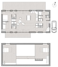 Avec ses deux espaces en mezzanine reliés par une passerelle, la maison peut accueillir toute la famille l’été.
