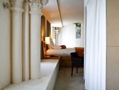 La partie haute, céleste, de la chapelle, abritera une première série de 27 chambres, les 23 autres chambres étant disposées sur les trois niveaux du bâtiment annexe construit conte la façade ouest, après démolition du bâtiment actuel.