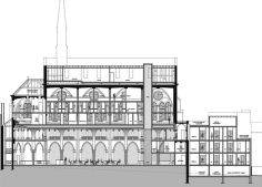 Par sa position, son échelle et la qualité de son architecture, cet édifice offre la possibilité de créer un vrai lieu urbain, contribuant au processus de transformation et d’ouverture du cœurde la ville. Pour «habiter» chacun des deux volumes superposés du site, le projet propose d’y assembler deux entités distinctes et complémentaires.