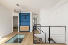L’ajout de deux chambres et d'un espace de jeux dans l'étage en surélévation a été l’occasion de repenser l’éclairage naturel et l’aménagement de l’étage existant, ainsi que le confort thermique de l’ensemble de l’appartement.