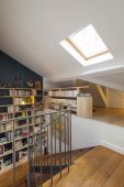 Enfin, les travaux ont été l'occasion de créer une grande bibliothèque de rangement sur le palier de l'escalier existant.
