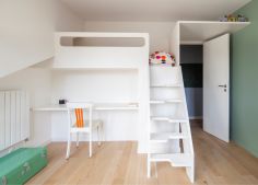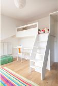 En réhaussant la toiture des combles, nous avons créé trois chambres, un couloir avec des rangements intégrès, et une salle d’eau avec WC. Le couloir desservant les différentes pièces a permis de redonner de l'intimité à chaque enfant.
